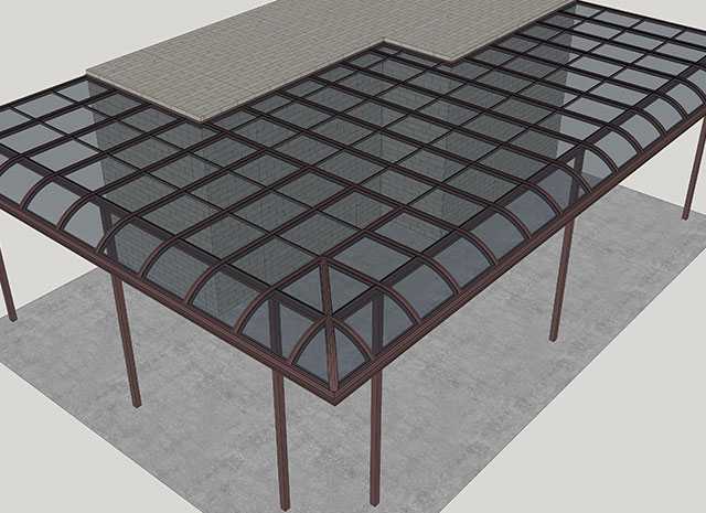 頂棚采用進(jìn)口聚碳酸酯板,抗沖擊是玻璃的數(shù)百倍,有效防止高空墜物