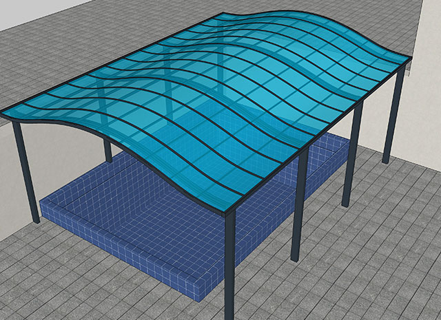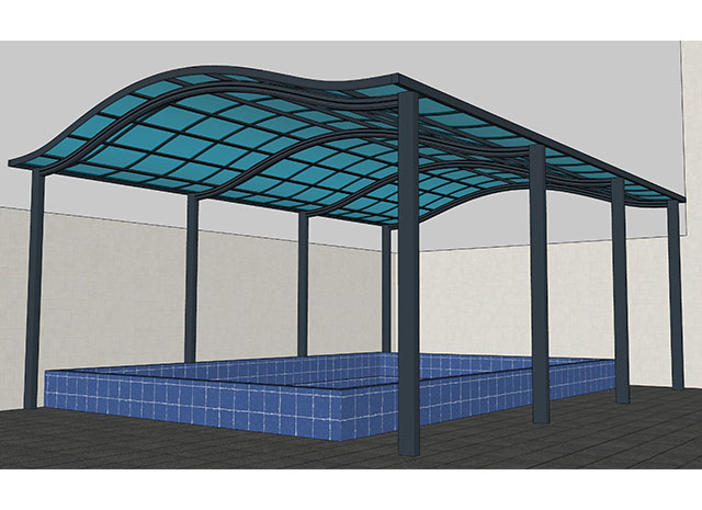 頂棚采用進(jìn)口聚碳酸酯板,抗沖擊是玻璃的數(shù)百倍,有效防止高空墜物
