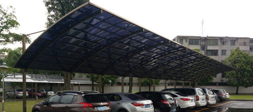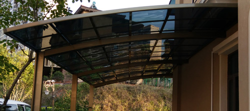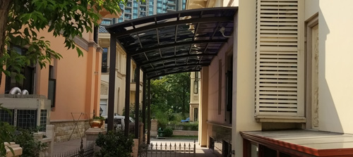 頂棚采用進(jìn)口聚碳酸酯板,抗沖擊是玻璃的數(shù)百倍,有效防止高空墜物
