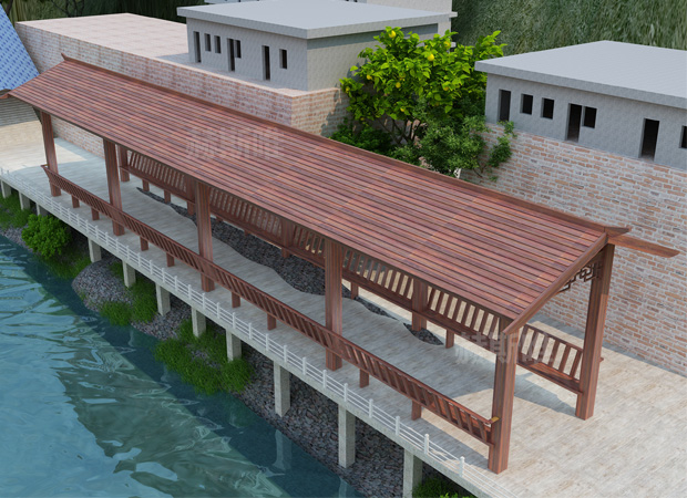 有柱無墻,開敞通透適用于景色層次豐富的環(huán)境,使廊的兩面有景可觀。當(dāng)次廊隔水飛架,即為水廊。