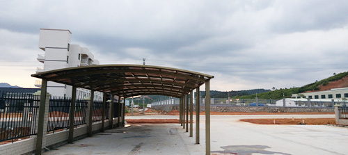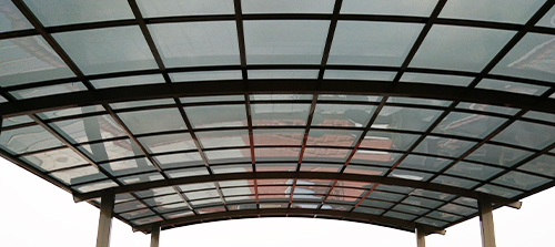 頂棚采用進(jìn)口聚碳酸酯板,抗沖擊是玻璃的數(shù)百倍,有效防止高空墜物