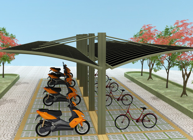 自行車棚可以高效地解決人們停車問(wèn)題,在有限的空間中停放大量的自行車,這是解決了人們的基本需求。