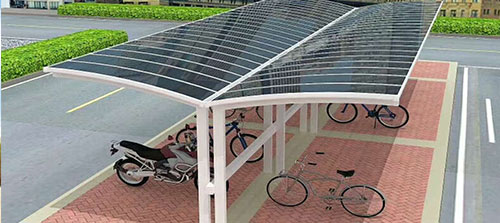 自行車停車棚頂棚表面UV涂層,能夠抵擋大部分紫外線,有效預(yù)制紫外線對(duì)車輛的傷害
