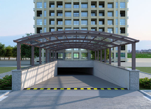 頂棚采用進(jìn)口聚碳酸酯板,抗沖擊是玻璃的數(shù)百倍,有效防止高空墜物