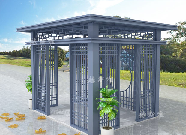 2、 新中式鋁合涼亭可加工性好,可訂、可刨、可鋸、可鉆、可彎可直,可圓可方,可制作各種木制品無法制作的造型。