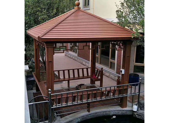 近些年來(lái),鋁制涼亭受到了很多人的青睞,因?yàn)殇X制涼亭材質(zhì)硬不易老化,后期基本不用維護(hù),其外觀經(jīng)過(guò)木紋處理轉(zhuǎn)印后,質(zhì)地顏色都和木頭很相似,從遠(yuǎn)處更是看不出來(lái)區(qū)別,經(jīng)風(fēng)摧日曬也不易掉色、老化、干裂,而這些在木制涼亭中都無(wú)法避免。而且鋁制涼亭建造后牢固性也很好!