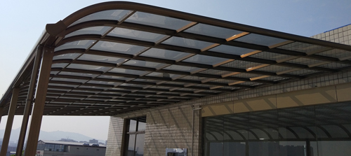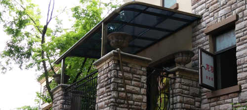 頂棚采用進(jìn)口聚碳酸酯板,抗沖擊是玻璃的數(shù)百倍,有效防止高空墜物